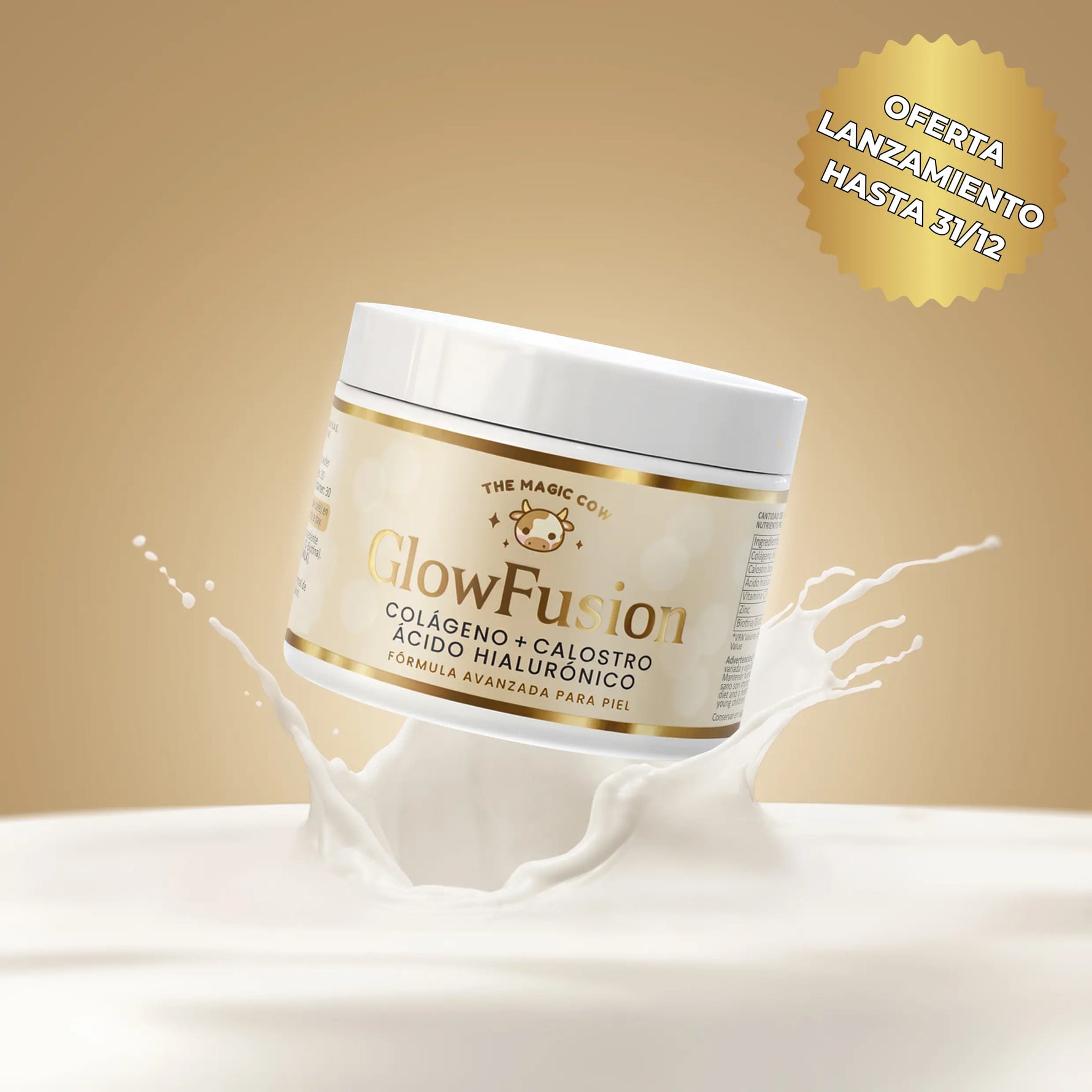 GlowFusion es una fórmula completa de belleza desde dentro que combina colágeno marino hidrolizado, calostro y nutrientes esenciales como la vitamina C, el ácido hialurónico, la biotina y el zinc.